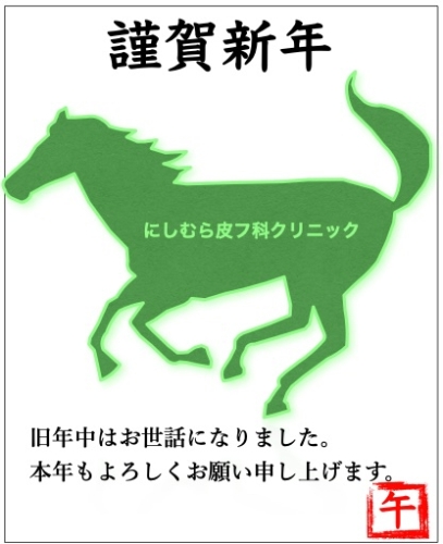 にしむら皮フ科クリニック院長と看護師長が不定期でお送りします。 アーカイブ 『 2026年1月1日 』 2026.01.01(木) 謹賀新年 新年あけましておめでとうございます 旧年中はたいへんお世話になりました。 本年も引き続きよろしくお願い致します。 新年診療開始は1月5日(月)からです。 (院長) 〠918-8105 福井県福井市木田3丁目2605 にしむら皮フ科クリニックのホームページ 2026/01/01 西村 陽一 (タグ)院長日記