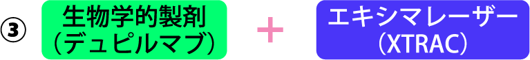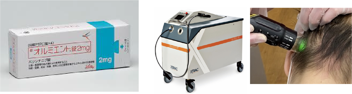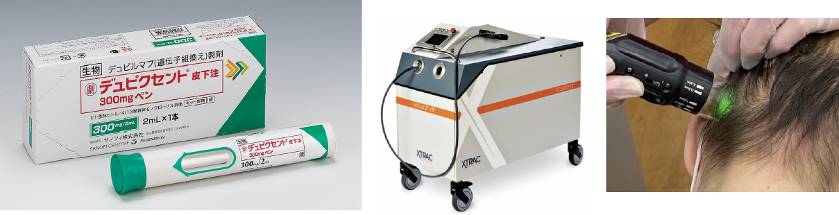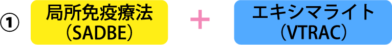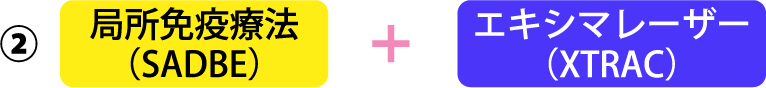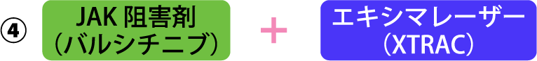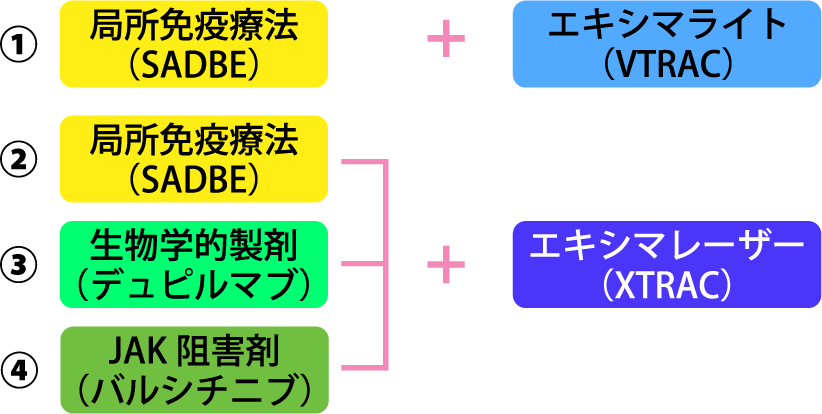 エキシマライトは、毛包上皮を攻撃する自己反応性T細胞などをアポトーシスに導き発毛を促します。特にVTRAC(ヴィトラック)は、エキシマライト最強の照度を持ち、SADBE療法と併用すると絶大な効果を示します。軽症から中等症、一部の重症までカバーします。