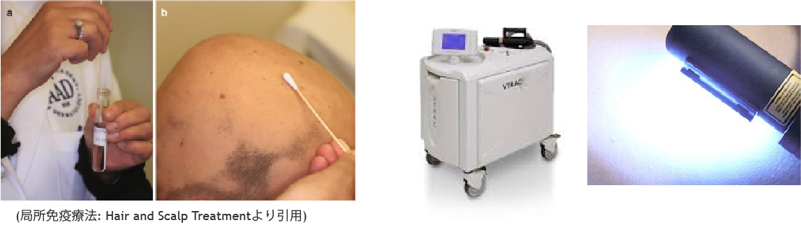 局所免疫療法(SADBE)は、人工的に皮膚をかぶれさせることでTregを誘導し、自己反応性T細胞を抑制して発毛を促します。